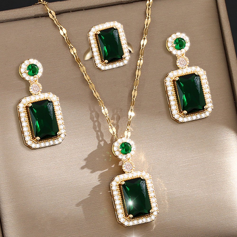 Parure élégante : Ensemble coordonné avec collier, boucles d'oreilles et bague.
